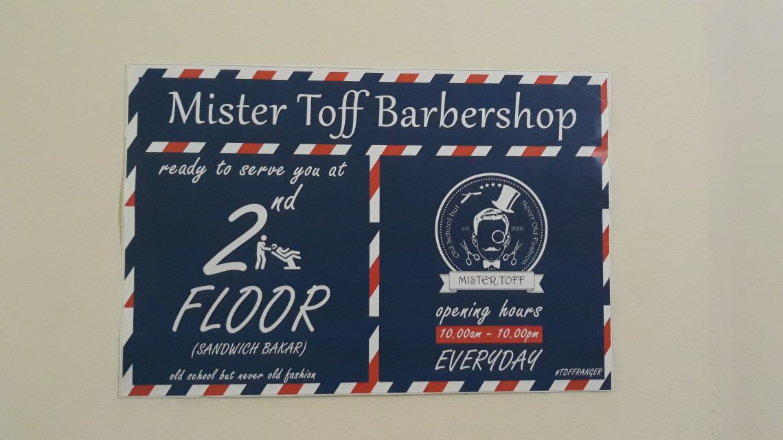 Dengan mengusung konsep perpaduan antara retro dan minimalis, barbershop yang satu menyuguhi para pengunjungnya dengan berbagai macam hiasan, benda-benda serta interior menarik khas era 70-an. Selain konsep yang diusung tersebut, Mister Toff Barbershop juga menawarkan beragam perawatan khusus bagi seorang gentleman sejati, seperti : Mr Toff Cut, Shaving, Trim, Pomade Apply, dan juga Hair Colouring.